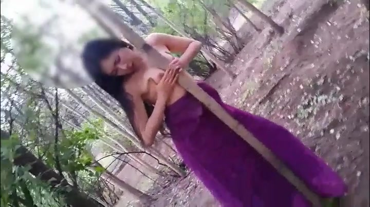 树林拍摄写真时故意坦胸露乳不停的往树上操勾引导演