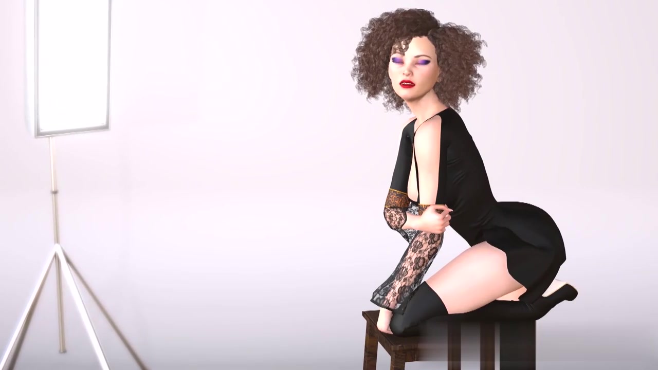 年轻的时尚女性在照相馆与黑人摄影师打炮。