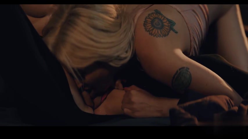 健壮的棕发女子和金发女子轮流骑乘并吮吸着一只巨大的黑色大屌