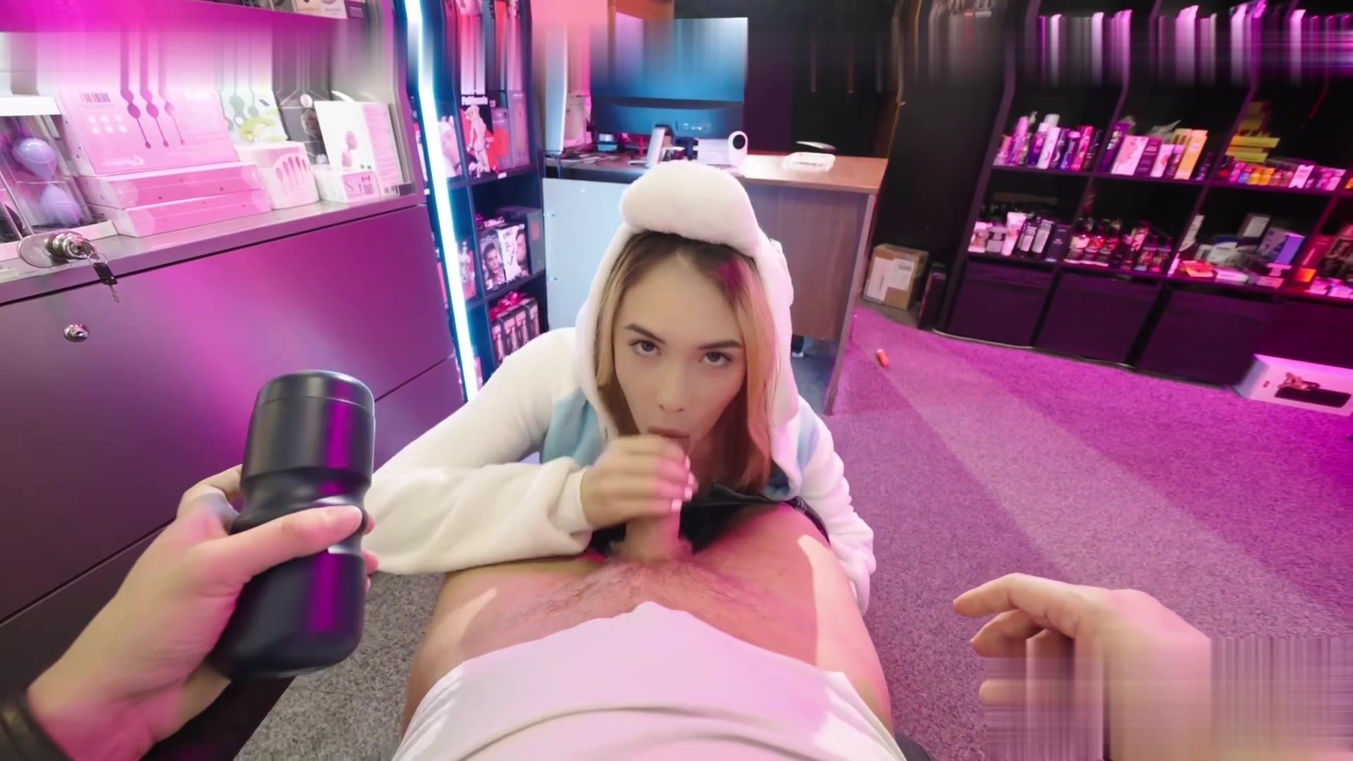 这位放荡的金发骚货崇拜并骑乘着一个又大又细长的阳具