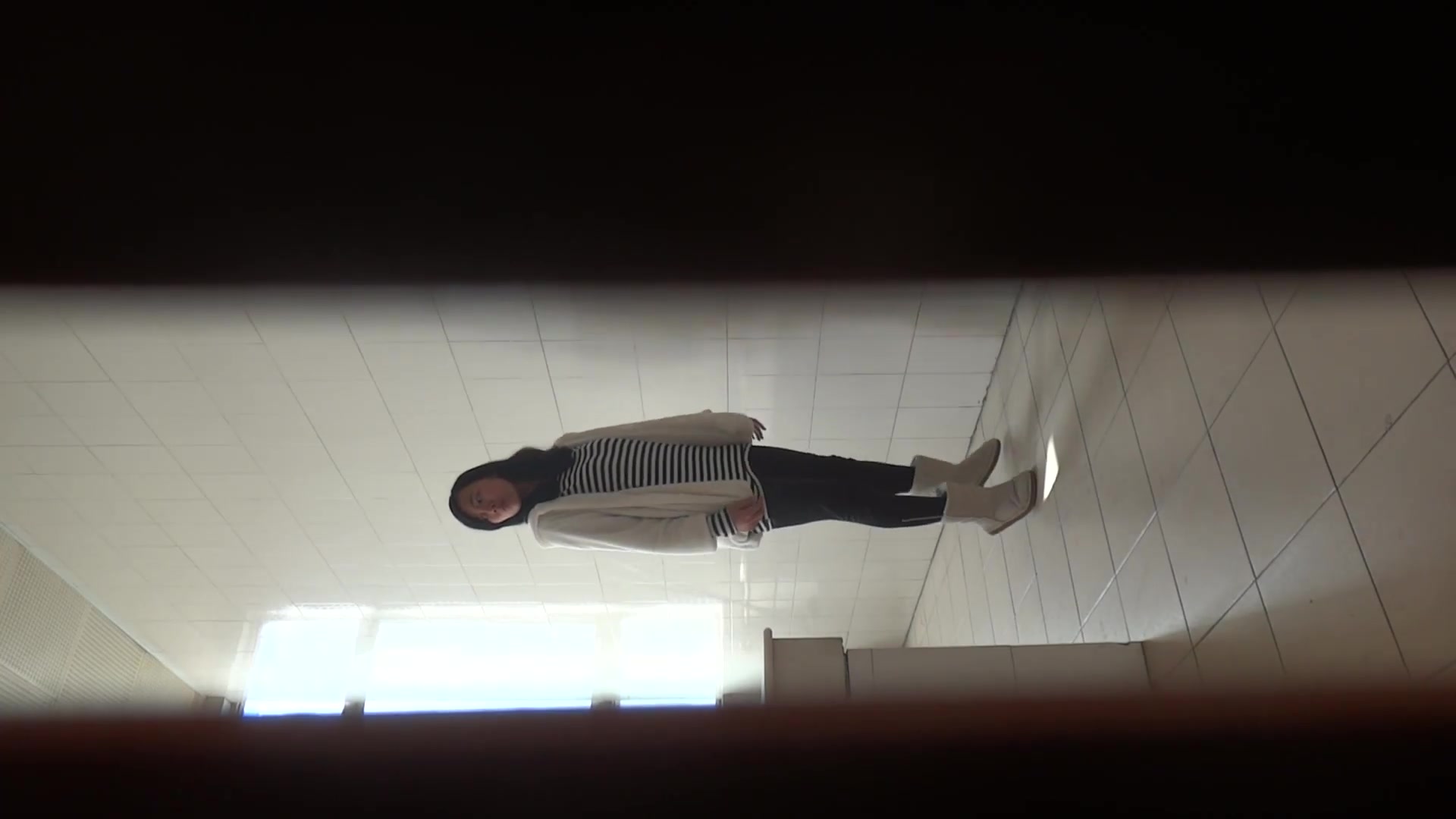 学生MM厕所跟拍系列4 妹子尿完踮着脚照镜子,看看自己背影漂亮不